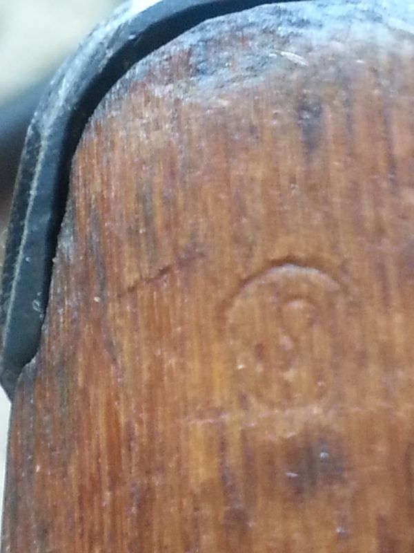 The stock is also dark and worn smooth. And when I bought it, I seem to recall that it had a kind of mildewy smell to it. But I have not sniffed it in a while, so I can't say for certain what it smells like now.